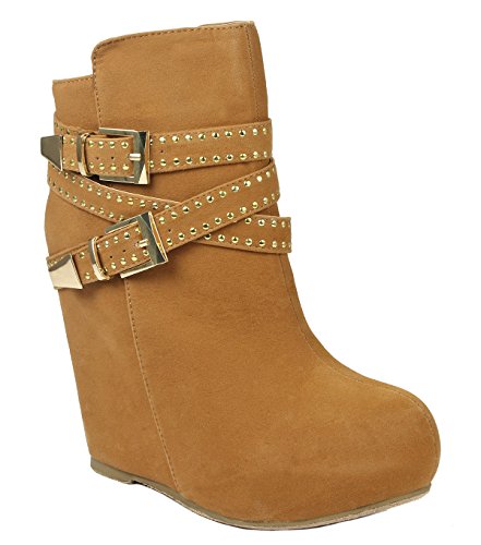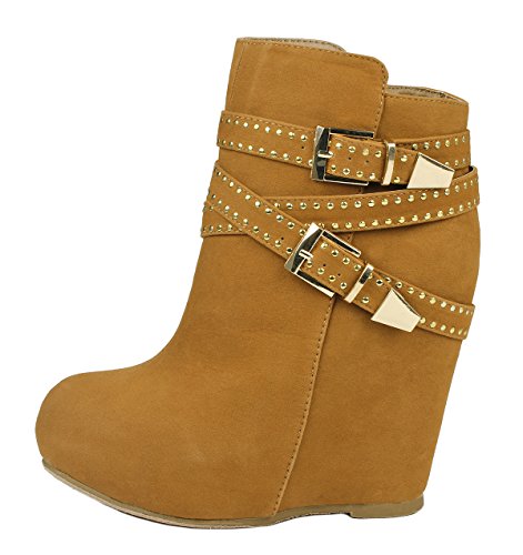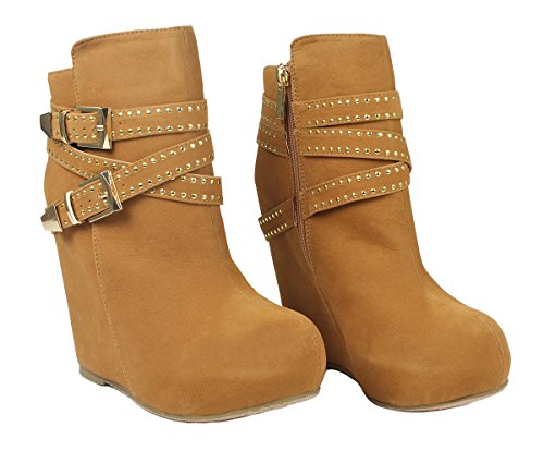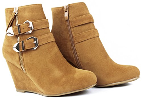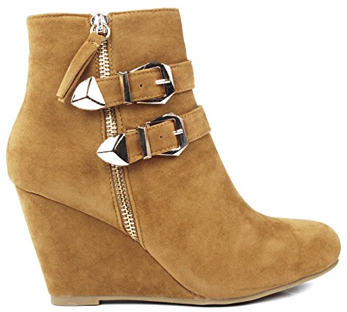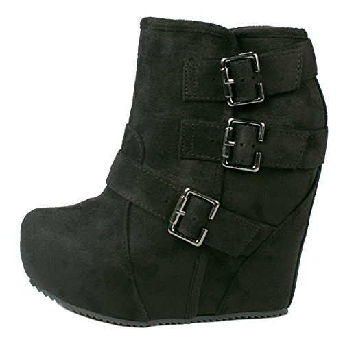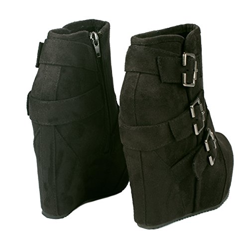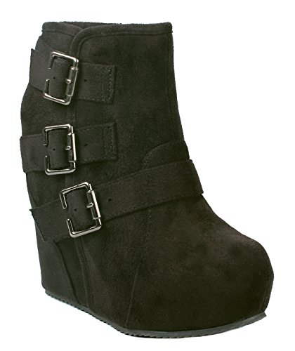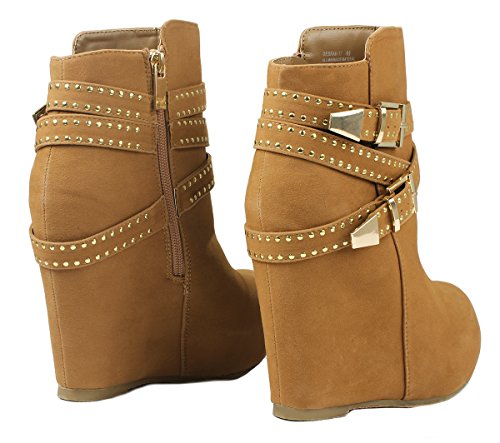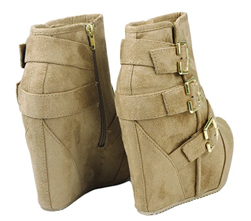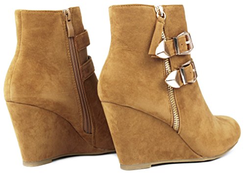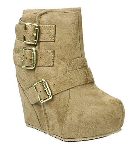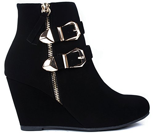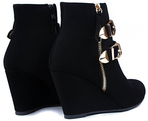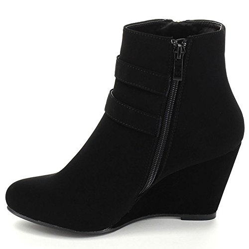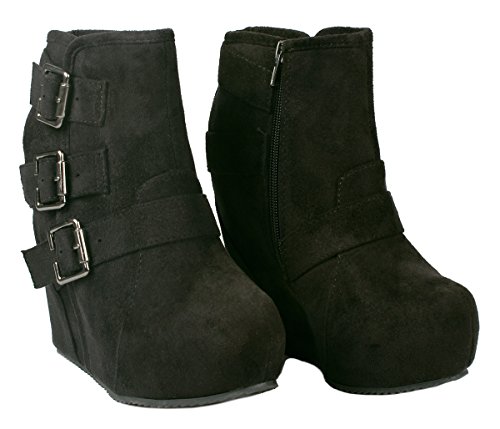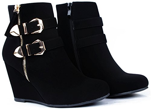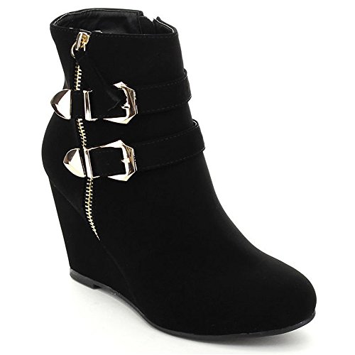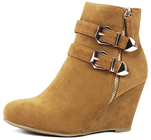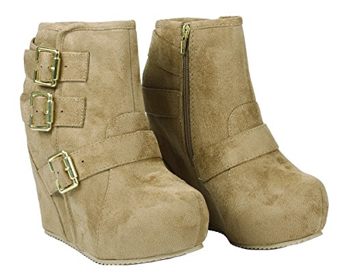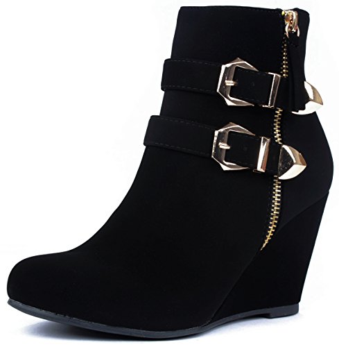 Binding : Apparel Product Description These adorable wedge booties are chic and comfy that you'll want to wear them everyday. Featuring a round toe, decorative golden zipper, faux suede upper, dual golden buckle with ankle strap accents. Finished with a rubber sole, lightly cushioned insole, and a inner zipper closure for easy on/off. 0