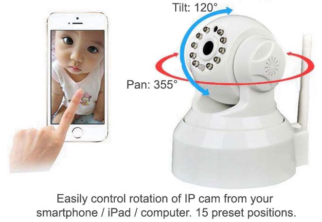 Pan 355° / Tilt 120° Remote Control (up, down, left, right, rotation)