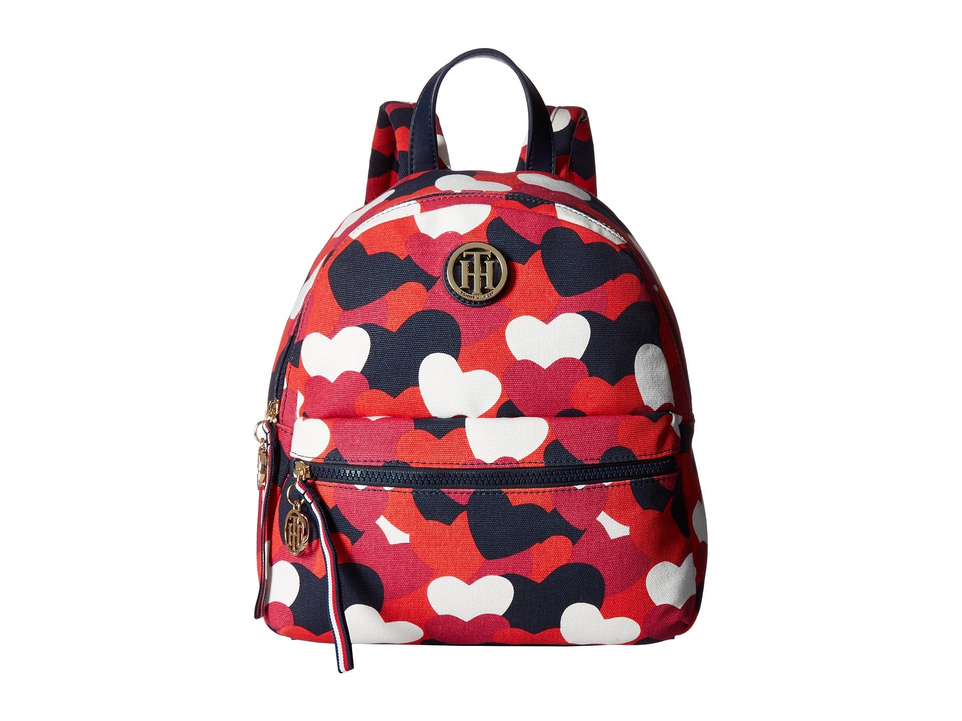| Product Information SKU: #8919249You'll fall in love with this cute Tommy Heart Backpack.Made of man-made material.Zipper closure.Top carrying handle with dual padded, adjustable shoulder straps.Exterior front zip pocket.Signature logo hardware detail in front.Flat bottom.Lined interior.Interior zip and slip pockets.Imported.This product may have a manufacturer's warranty. Please visit the manufacturer's website or contact us at warranty@support.zappos.com for full manufacturer warranty details.Measurements: Bottom Width: 10 in Middle Width: 10 in Top Width: 10 in Depth: 5 1?2 in Height: 11 in Strap Length: 30 in Strap Drop: 14 in Handle Length: 8 in Handle Drop: 3 in Weight: 15 oz |