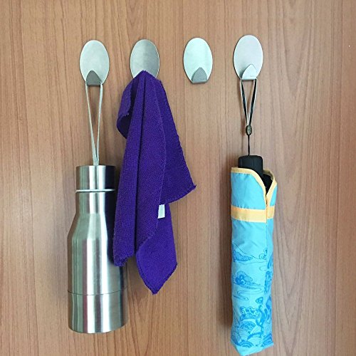 Color Map 4-Pack SUS 304 Stainless Steel Self Adhesive Hook Key Rack Garage Storage Organizer Stick On Sticky Bathroom Kitchen Towel Hanger Wall Mount Contemporary Style (HOOK-G)