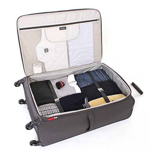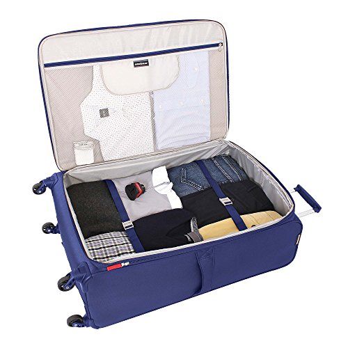 -. Feature : 4 wheel lightweight spinner / Includes convenient wet bag / Aluminum telescopic handle / 1.5" Expansion zipper for added packing capacity / 13 x 19 x 29