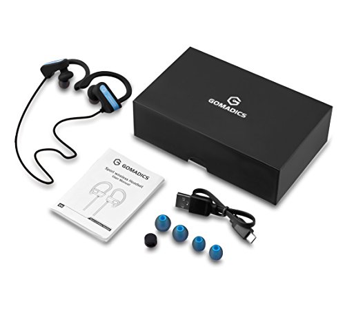 -. Binding : Wireless Phone Accessory -. Brand : Gomadics -. EAN : 0819508021901 -. Feature : WANT A SLIP RESISTANT HEADPHONE FOR RUNNING - With our wireless sports headphones comfort is guaranteed thanks to an ergonomic fit and silicone earbuds / NEED ONE SET OF WIRELESS HEADPHONES WITH MIC FOR ALL DEVICES - Pair our wireless headphone with iPhone, Android or any other device to make hands-free phone calls at your leisure / NEED TO MAKE PHONE CALLS ON THE GO - Answer, end and reject calls at the press of a button. The clever voice prompt feature will even tell you who's calling / TIRED OF YOUR BLUETOOTH HEADPHONES RUNNING OUT OF BATTERY - These rechargeable hands-free earphones have a USB charging socket for 6-8 hours of long-lasting power / LOOKING FOR A BETTER SOUND QUALITY - GOMADICS bluetooth earphones boast a crisp, clear sound. You also have full control over the volume thanks to the unique button feature the side of the ear hook -. Label : Gomadics -. Manufacturer : Gomadics -. PackageQuantity : 1 -. ProductGroup : Wireless -. ProductTypeName : WIRELESS_ACCESSORY -. Publisher : Gomadics -. Studio : Gomadics -. Title : Wireless headphones by GOMADICS with waterproof and noise cancelling capacity. Compatible with iPhone, Android and other devices that don't have a microphone. Perfect for runners and joggers. -. UPC : 819508021901