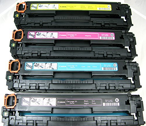 -. Feature : Genuine Canon 131 starter toner cartridges 4 pack. Contains genuine Canon toner. / Canon 131Bk starter yields up to 1200 pages. Canon 131C/M/Y starter yields up to 750 pages. / Printers: Canon ImageCLASS LBP7110CW, MF624CW, MF628CW, MF8280CW / 4 Pack Contains: 1 x black, 1 x cyan, 1 x magenta, 1 x yellow / Genuine Canon at a discounted price. Not remanufactured. Items are out of box and ship as shown in image.