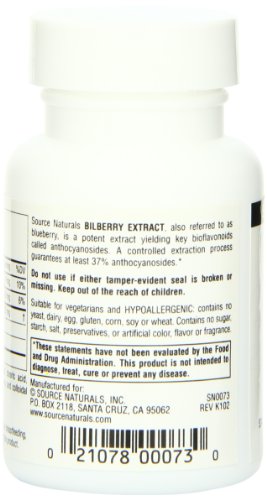 (Source Naturals)/Vitamins Dietary Supplements/Herbal Supplements/DIRECT FROM USA/Source Naturals Bilberry Extract 100mg, Standardized Botanical Antioxidant, 60 Tablets