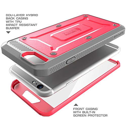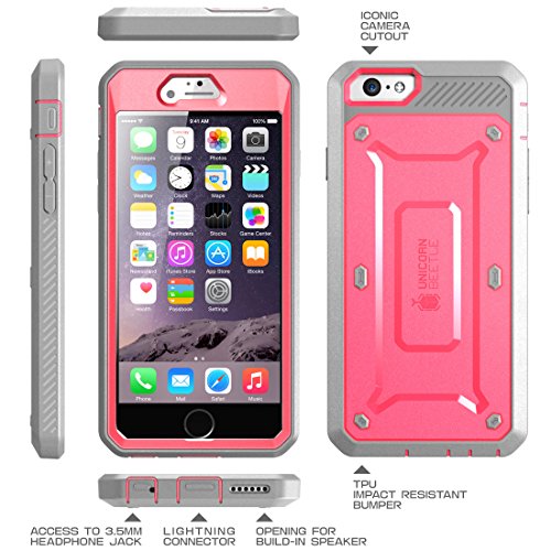 Compatibility: Compatible with Apple iPhone 6s 4.7 inch 2015 Release or iPhone 6 2014 Release, allowing full access to touchscreen, camera, buttons, and ports. NOT COMPATIBLE with iPhone 6s/6 5.5 inch or any other iPhone grade polycarbonate + thermoplastic polyurethane for shock absorption. Front cover with built-in screen protector prevents scratches without compromising with both protection and looks in mind, SUPCASE Unicorn Beetle PRO Series Full-body Hybrid Case provides shock absorption and scratch prevention while maintaining a sporty profile.- Advanced front cover design for easy installation- Built-in screen protector without compromising sensitivity- Advanced dual-layer (PC + TPU) design provides great impact and shock resistance and prevents accidental drop, bump, and shock- Belt Clip Holster- Easy access to all features (buttons, camera, speaker, and ports)- Sporty profile and multiple color options What's in the package?1x SUPCASE Unicorn Beetle PRO Case for iPhone 6s 4.7 inch 2015 Release or iPhone 6 2014 ReleaseFeature