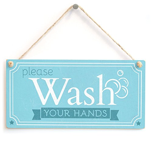Please Wash Your Hands - Handmade Shabby Chic Wooden Sign / Plaque Wooden Hanging Sign 8" X 12"