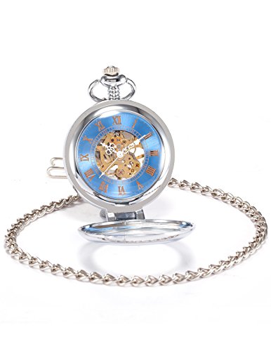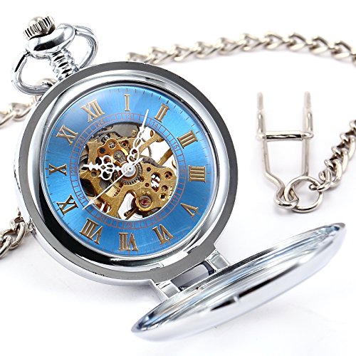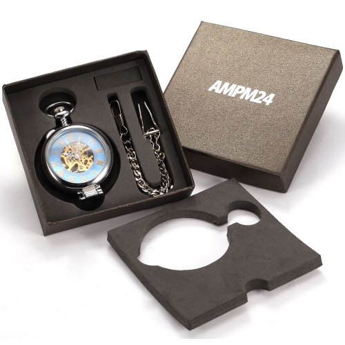 AMPM24 맨즈 앤틱 패션 스켈리턴 다이얼스팀펑크 기계식블루회중 시계 WPK130