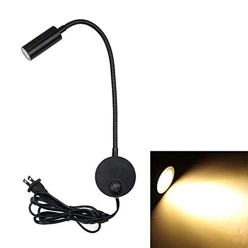 Onerbuy Plug Wired Flexible Gooseneck Wall Sconce Reading Lamp Art Works Show Accent Light Wall Mount Spot Lamp Fixture with On/off Switch (Black-warm white)