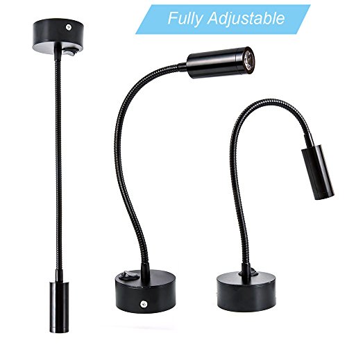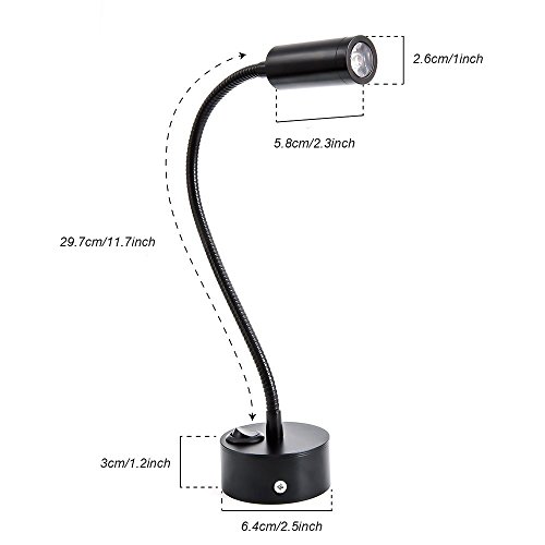 - Flexible goose-neck: 30cm / 12inch, 360 degrees adjustable lighting direction, be capable of swiveling and rotating for desired lighting angle--- Turn up for a nice ambient light, turn downwards for reading without bothering others