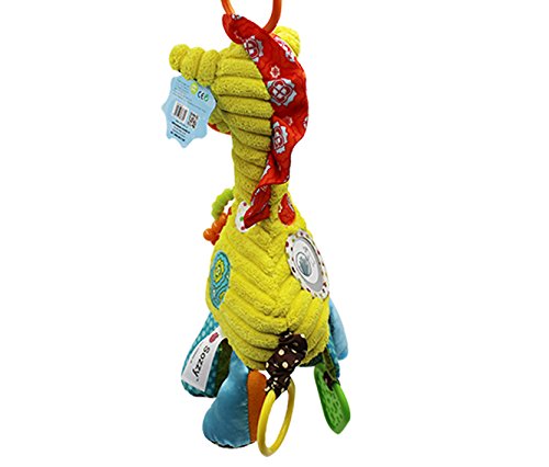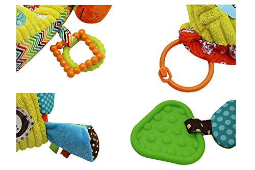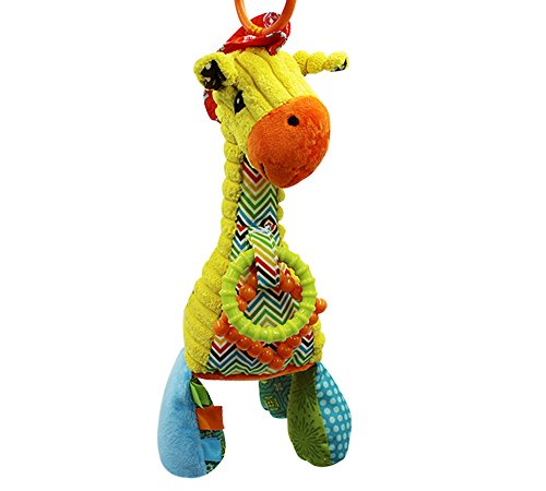 ♫ RING BELL: A different sensory stimulating activity on each one of giraffe's legs. Two legs built with beautifully clear bells, and the third leg is ring paper layer, the forth leg is made of silicone teether for chewing, loud rustling of paper pressure, more functions is made for smart baby to find out