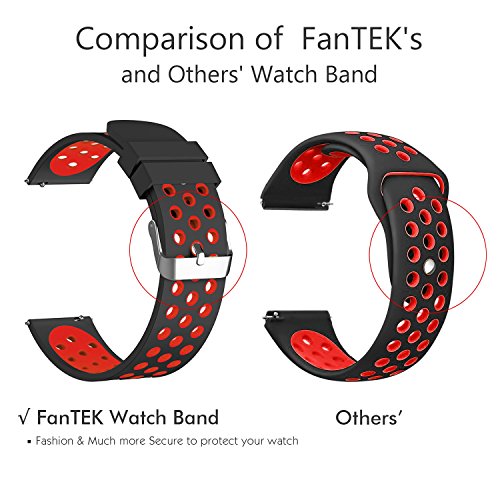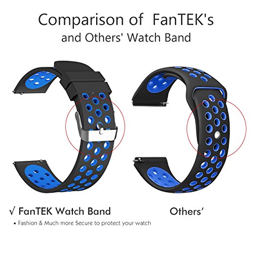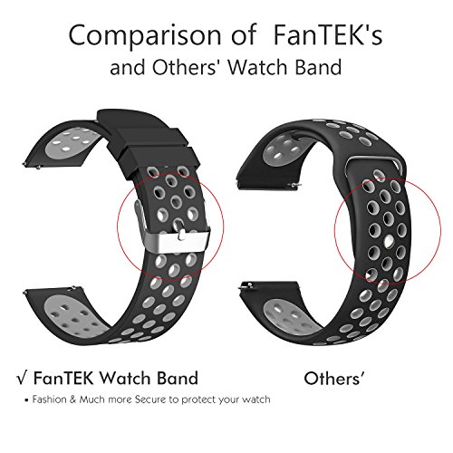 FanTEK 18mm 20mm 22mm 23mm Armbanduhr BANDS, Fantek Weich Silikon atmungsaktiv Nike Sport Band Wasserdicht Alternative Uhrenarmband Armband fur Samsung Gear S3/Pebble Time/Moto 3602