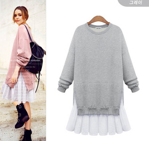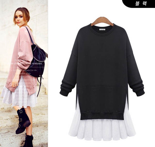 ワンピ ワンピース ドルマンワンピース ゆったり ひざ丈 レイヤード風 ドッキングワンピース レディス レディース 秋 新作 2017
