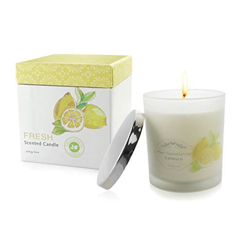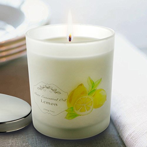 Natural Soy Wax Candle with Pure Essential Oil, Aromatheraphy Candle, Smokeless Candle, Huge Size Scented Candle (9oz/250g). (Lemon)