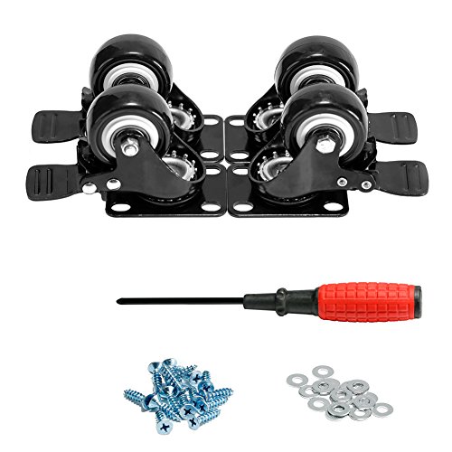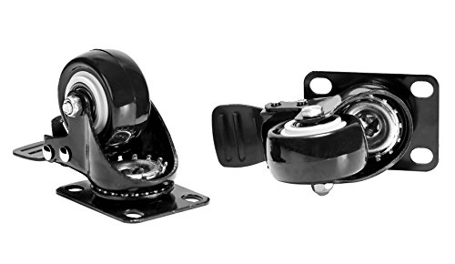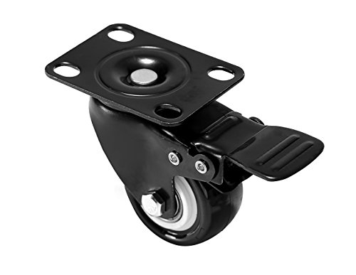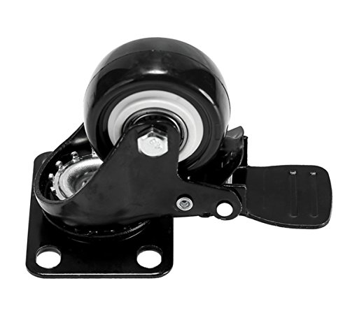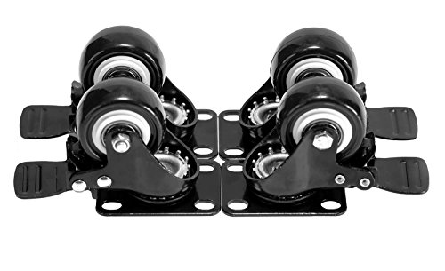 4 Pack Caster Wheels Swivel Plate Black Polyurethane Wheels Base Double Ball ,2 Inch With Brake
