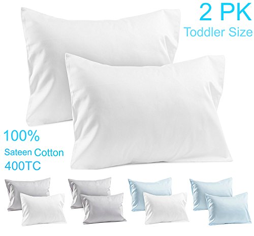 2 White Toddler Pillowcases - Envelope Style - 100% Cotton 400 TC Soft Sateen Weave - For Travel Pillows 14x19 or 13x18 - Toddler Pillow Cases Toddler Pillow Case Covers White Travel Pillow Cases