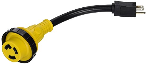 RV Power Adapter 15 Amp Male to 30 Amp Female with Locking Connector (Yellow / Black)