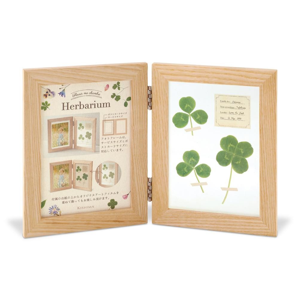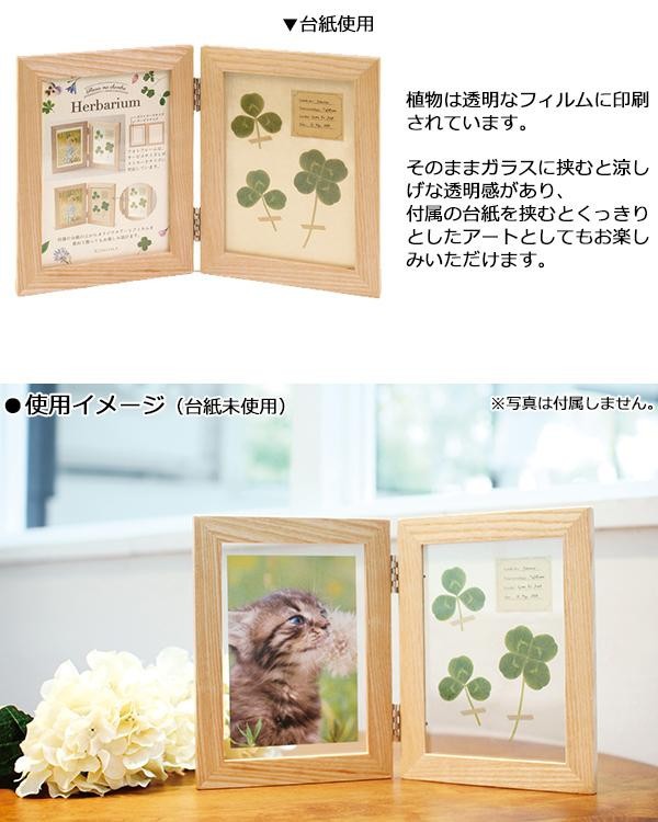 | フィルムに印刷された植物はまるで本物の植物を挟んだかのよう。アンティークな標本やスクラップブックを切り取ったようなアートな雰囲気が魅力です。もう片方にはお好きな写真を飾れます。 |