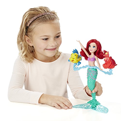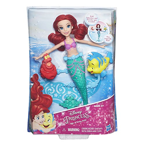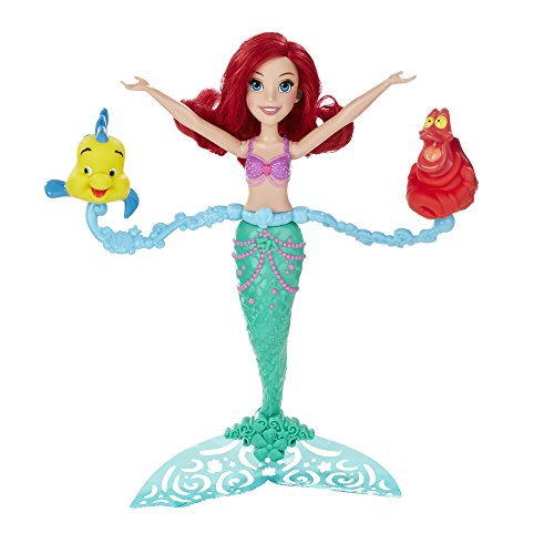 -. Binding : Toy -. Brand : Disney Princess -. EAN : 0630509402335 -. Feature : Doll has movie-inspired features / Comes with her friends Flounder and Sebastian / Doll and friends float and spin in the water / Girls can wind doll up to make the friends whirl / Includes doll and 2 accessories. -. Label : Hasbro -. Manufacturer : Hasbro -. Model : B5308 -. MPN : B5308 -. PackageQuantity : 1 -. PartNumber : B5308 -. ProductGroup : Toy -. ProductTypeName : TOYS_AND_GAMES -. Publisher : Hasbro -. ReleaseDate : 2016-01-01 -. Studio : Hasbro -. Title : Disney Princess Spin & Swim Ariel -. UPC : 630509402335 -. Warranty : No Warranty
