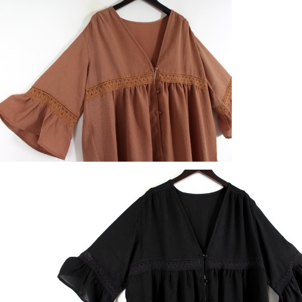 | 実寸 | 着丈:110cm、肩幅:40cm、バスト:104cm、袖丈:38cm、袖口:64cm、裾周り:145cm |