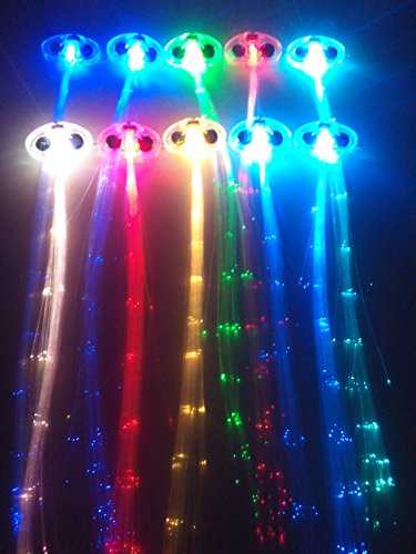 RioRand LED Fiber Optic Lights Up Hair Alternating Multicolor Flash Barrette 10 Piece Clip Braid for New Years Eve Party, 6.4 Ounce