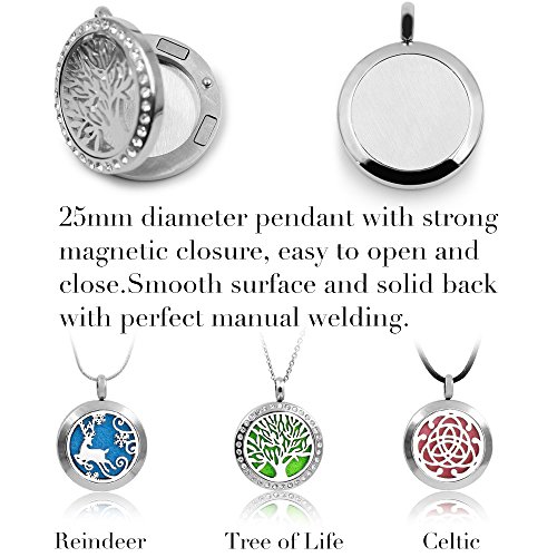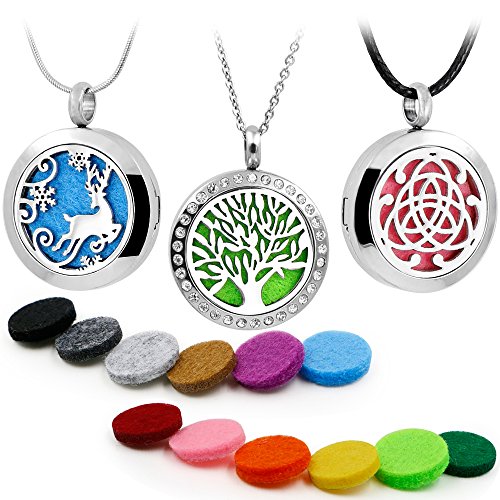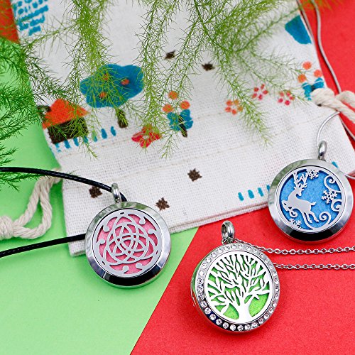 - ❄ PROMOTION PRICE! GOOD PRICE FOR THREE!3PCS Aromatherapy diffuser necklaces! Three different patterns lockets! Two stainless steel chains and one premium round waxed rope. Optional collocation!Please choose 17mm felt pads in our store when you need replacement pads