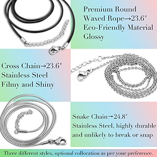 - ❄25mm DIAMETER for all the three lockets, premium 316L stainless steel material, strong magnetic closures and solid back. The necklaces set comes with 12 different colors 17mm felt pads. There is one 23.6”cross chain, one 23.6”snake chain and one 24.8" Eco-friendly material waxed rope. More matching selections for you. Which chain/rope matches which pendant just as per your preference.