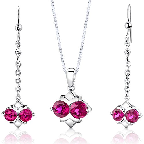 -. Feature : Created Ruby, Pigeon Blood Red Hue with Brilliant Sparkle / Pendant and Earrings are in .925 Sterling Silver and finished with Rhodium / Top Quality Craftsmanship / Exceptional Styling / 30 Day Return Policy