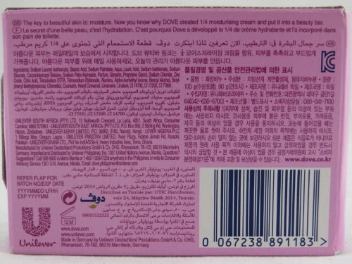 -. Binding : Health and Beauty -. Brand : Dove -. EAN : 0085275506709 -. Feature : Box of 12 bars each bar individually wrapped, Made in Germany / With 1/4 moisturizing cream, richly blended with its mildest cleansers, no other beauty bar has more skin natural moisturizers than dove / everyday moisture is the key to beautiful skin. / Mild and gentle skin cleanser / Dove Beauty Bar is the #1 choice of dermatologists -. IsAdultProduct : 0 -. Label : Dove -. Manufacturer : Dove -. MPN : VMKABU6 -. PackageQuantity : 1 -. PartNumber : VMKABU6 -. ProductGroup : Health and Beauty -. ProductTypeName : HEALTH_PERSONAL_CARE -. Publisher : Dove -. Size : 3.5 Ounces -. Studio : Dove -. Title : Dove Pink/Rosa Beauty Cream Bar Soap 3.5 Oz/100 Gr (Pack of 12 Bars) -. UPC : 085275506709