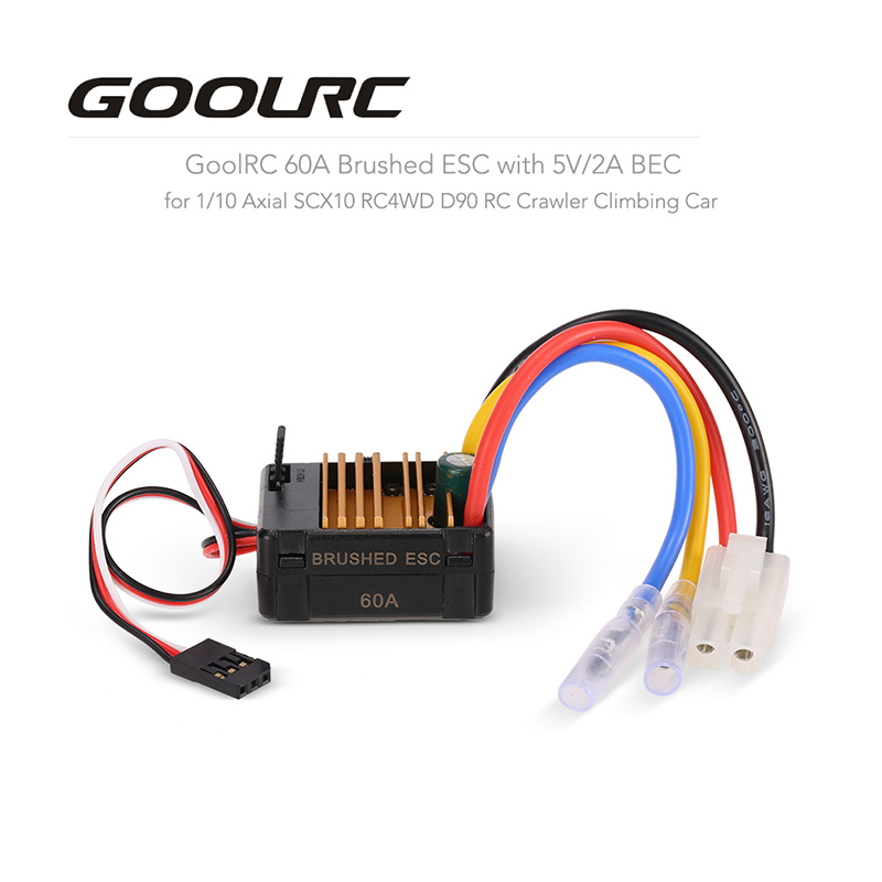 GoolRC 60A brushed ESC with 5V/2A BEC is specially designed for 1/10 RC rock crawler, which provides both quality and performance at an affordable price. With multiple protections makes a long service life.