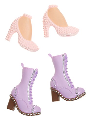 - Expand your Bratz doll shoe collection with a pair of lavender zip-up boots and studded pink heels with ankle straps