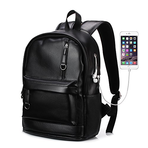 -. Title : KISSUN リュックサック メンズ 革 男女兼用 USB充電ポートとスマホ固定用吸盤付き 防水リュック PC対応ビジネスバッグ 大容量