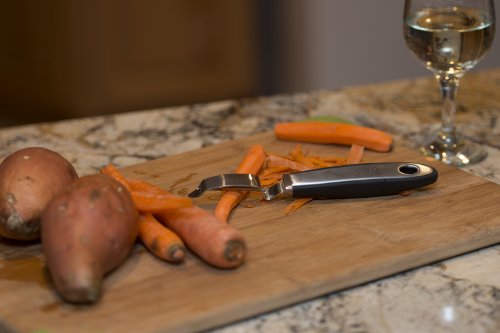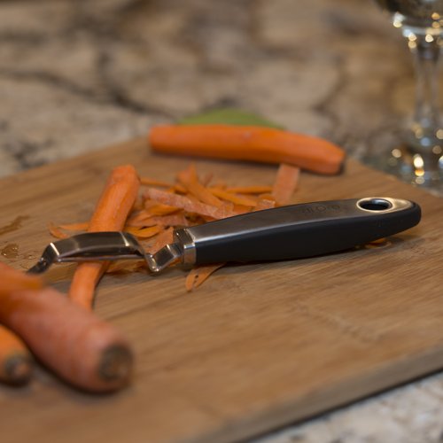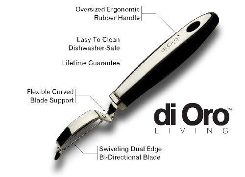 - Title : di Oro Living Potato Peeler - Stainless Steel & Black Rubber Ergonomic Swivel Vegetable Peeler Hand Tool for Potato or Carrot - Lifetime Guarantee