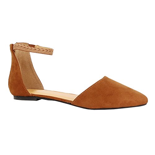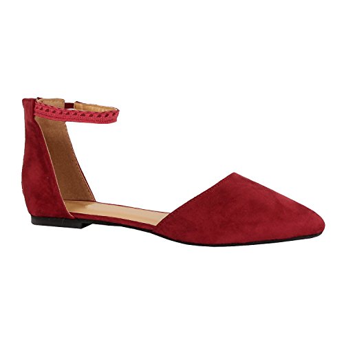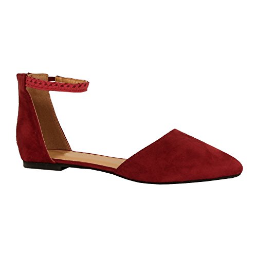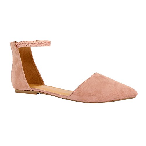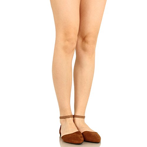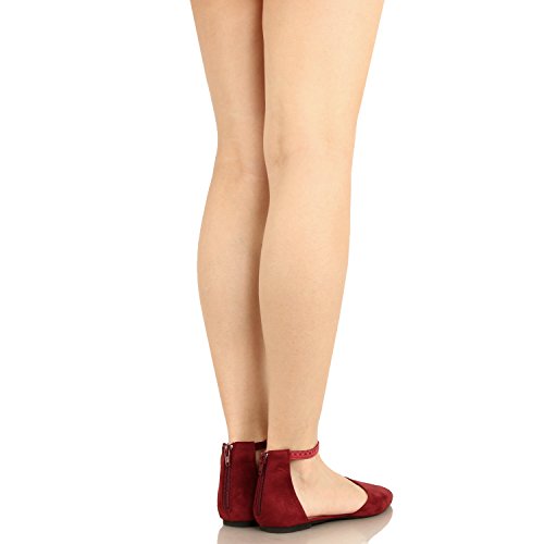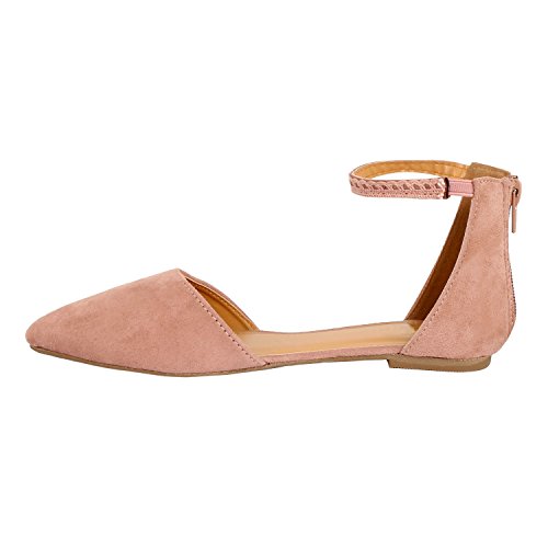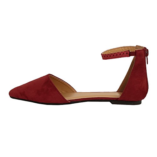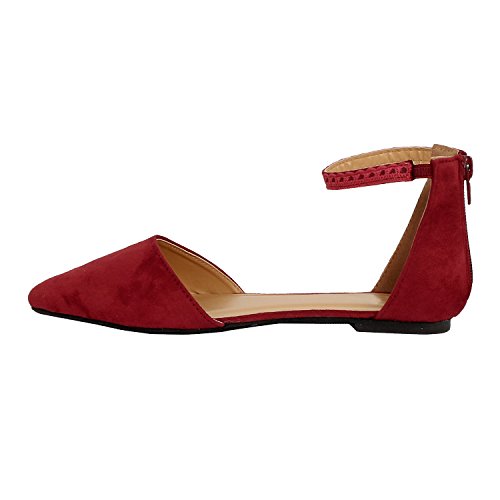 Guilty Heart Womens D'Orsay Ankle Strap Almond Pointed Toe Comfortable Suede Flats Flats