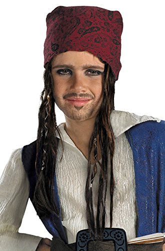 -. Brand : Disguise -. ClothingSize : One Size Fits Most -. Color : Red and Black -. Feature : Remember a wig cap (sold separately) to hold in your own hair. For wig care and styling tips click here. -. Label : Disguise -. Manufacturer : Disguise -. PackageQuantity : 1 -. ProductGroup : Apparel -. ProductTypeName : CHILDRENS_COSTUME -. Publisher : Disguise -. Size : One Size Fits Most -. Studio : Disguise -. Title : Disguise Jack Sparrow Headband with Braids