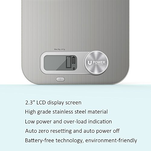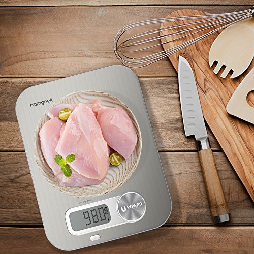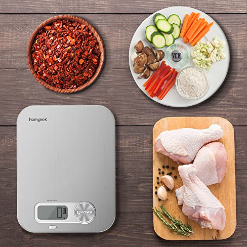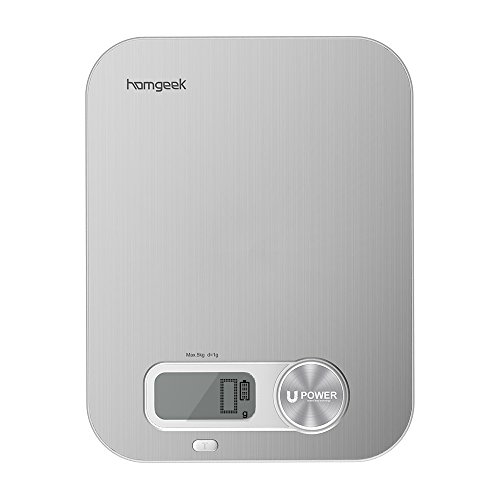 Homgeek Digital Kitchen Scale, Battery Free Multifunction 11lb/5kg, Food Scale Stainless Steel with Large LCD Display