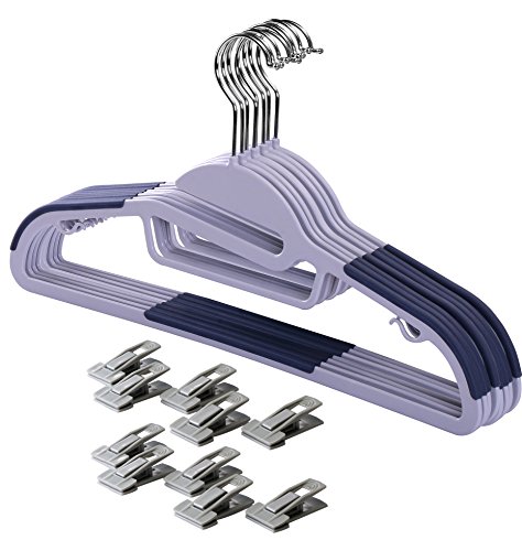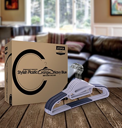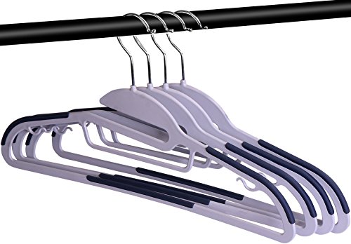 Pack of 50 Premium Quality TPR Plastic Hangers - Easy-On Slot - Non-Slip Pads - Center Tie Holder – 10 Grey Finger Clips Included - Slim & Sleek Design – by Utopia Home