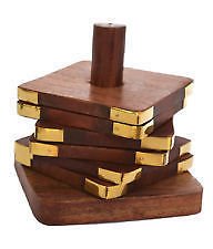 [Product Information]- Wooden & Brass Designer Sheesham Wood Coaster Set Office & Home Decor Gift Item