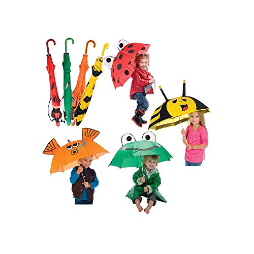 -. Binding : Toy -. Brand : Novelty -. Color : Multy -. Department : Boys -. EAN : 0716165177494 -. Feature : Pack includes - Ladybug, Frog, Bee and Goldfish / Measures: 23" long from handle to tip / Plastic handle. Makes people smile which is usually needed on rainy days / Approximately 26" diameter. / Manual Stick Umbrella -. IsAdultProduct : 0 -. Label : Novelty -. Manufacturer : Novelty -. ProductGroup : Toy -. ProductTypeName : TOYS_AND_GAMES -. Publisher : Novelty -. Size : Small -. Studio : Novelty -. Title : 4 Pk Kids Umbrella - Ladybug, Frog, Bee and Goldfish for Boys and Girls -. UPC : 716165177494