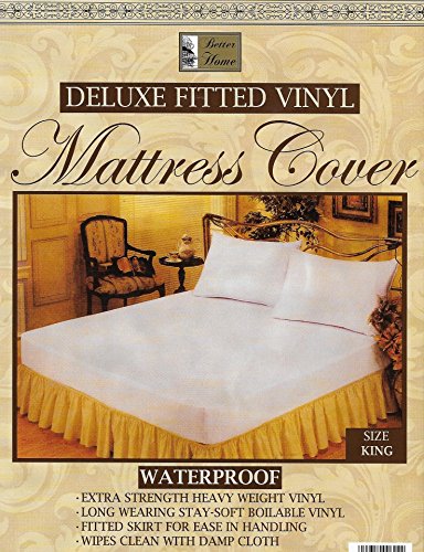-. Feature : Value 2 Pack Waterproof Fitted Vinyl Mattress Cover Bed Protector / Made of Durable 100% Vinyl- Protects against spills and stains / Long wearing stay soft boilable vinyl- Fits a King Size Bed Mattress / fitted skirt for easy handling / wipes clean with damp cloth