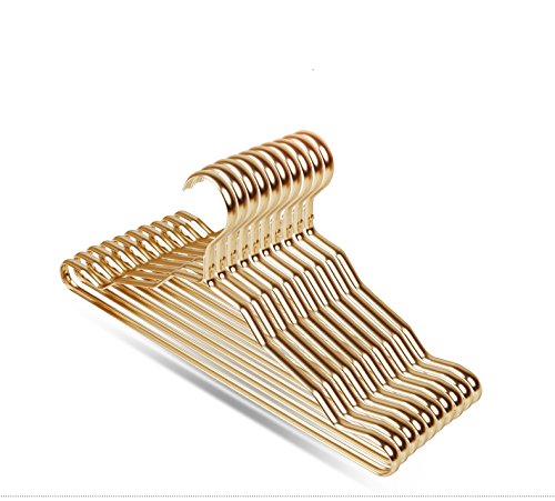 Winblooming Aluminum Metal Clothes Hanger Heavy Duty Non Slip Organizer Fade-proof Widen Hangers Pack of 10 (Gold)