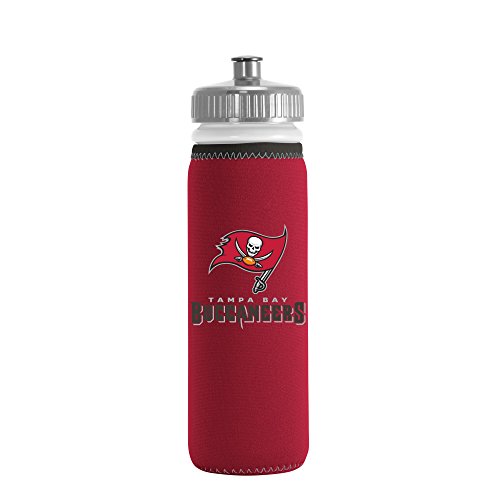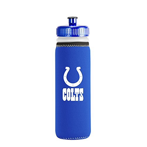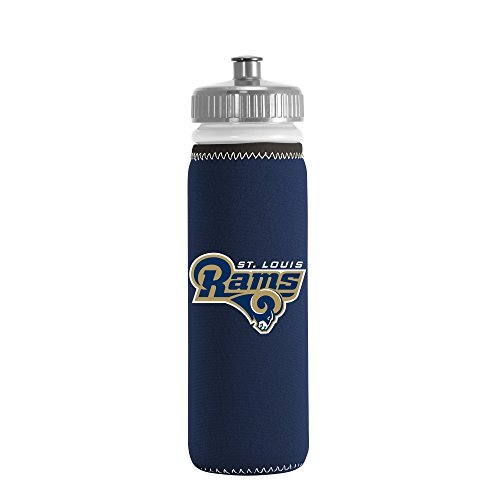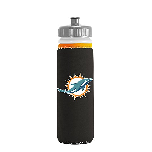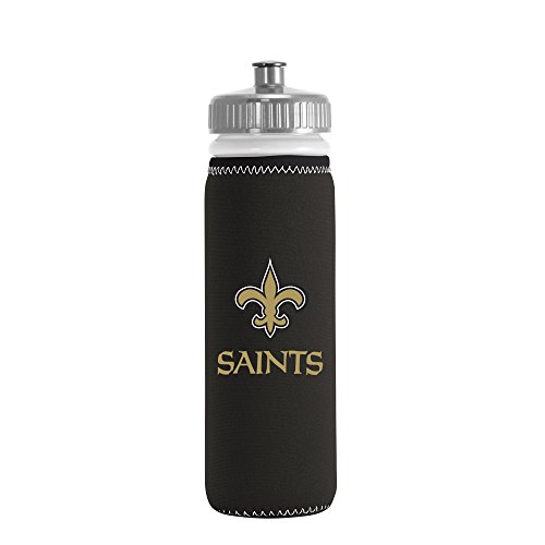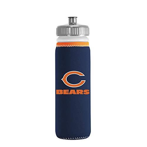 This polyethylene 22oz Water bottle with a push pull cap is surrounded by a 3 mm neoprene rubber sleeve to reduce condensation and help keep the contents cooler, longer. The Neoprene wrap features a sewn in bottom and your favorite team logo and colors. The bottle is made in the USA and is BPA free. The 22 ounce container measures approximately 9.5" tall and 2.5" in circumference. The bottle is made from safe, LDPE plastic which is NOT known to leach any chemicals that are suspected of causing cancer or disrupting hormones. Officially league licensed.Feature