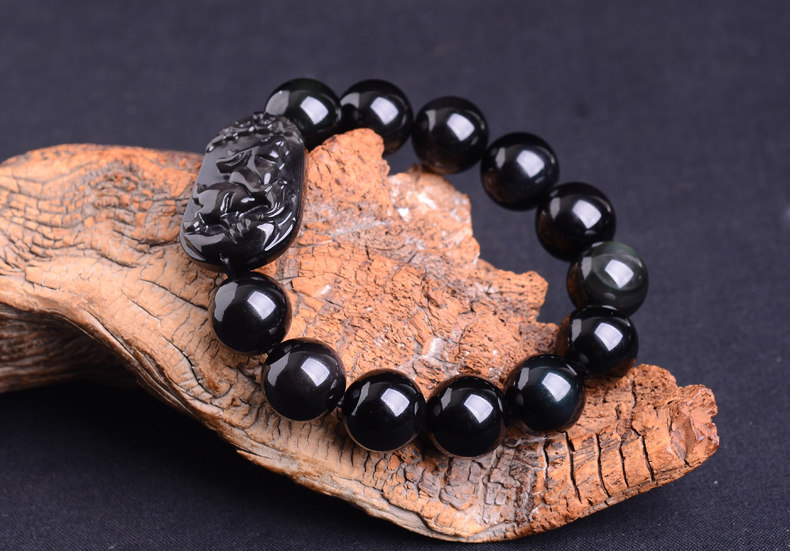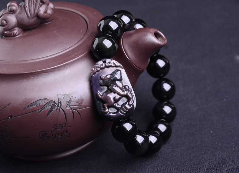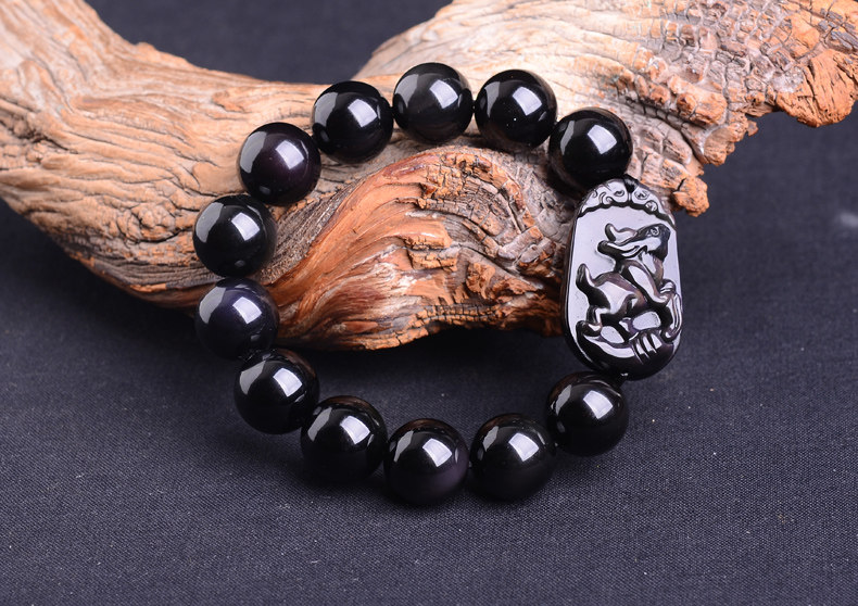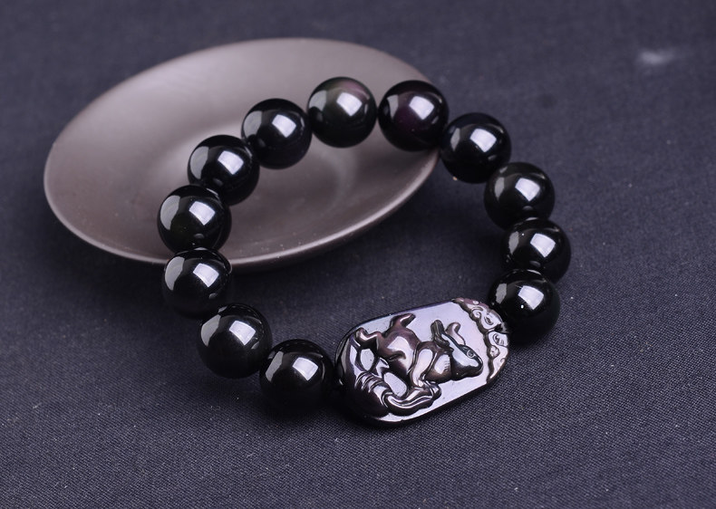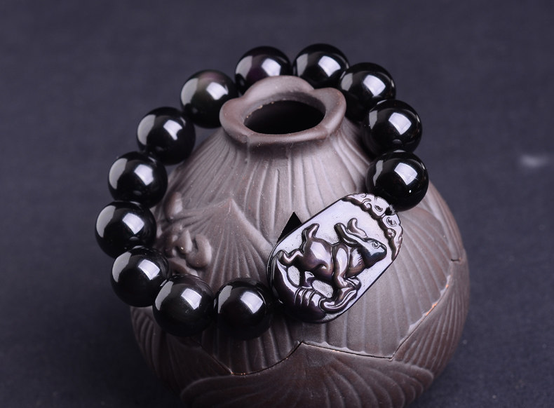 开光子丑太极姻缘手链黑曜石属牛八宝旺牛手链太极护身男女