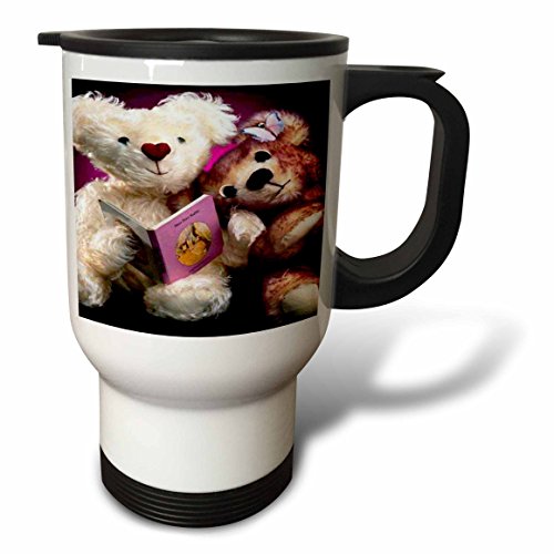 3dRose Teddy Bear Reading Travel Mug, 14-Ounce, Stainless Steel