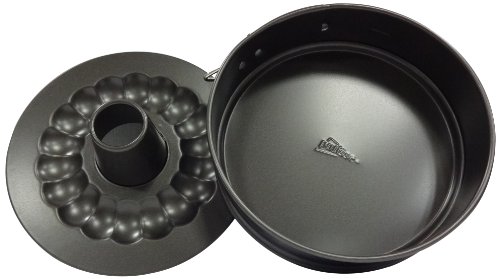 - Round spring form pan with Bundt bottom comes with interchangeable Extra flat bottom diameter 6-1/4 inches use different bottoms with same pan non stick coating European design