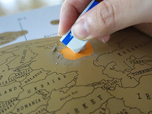 - you get a unique, slick looking gold wall map to start with, and then scratch off all the places you've visited to reveal a whole new world below, featuring colour and geographical detail. The result is a totally unique and personalised world map.