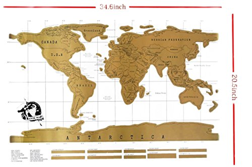 -Scratch Map is a amazingly high quality, uber massive wall map, featuring a gold top foil layer.