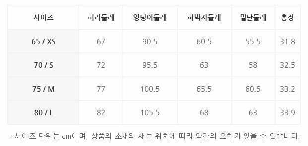 | 치수 | 실측(61)사이즈(cm)-허리둘레64 엉덩이둘레86 허벅지둘레46 밑단둘레30 총장92 |