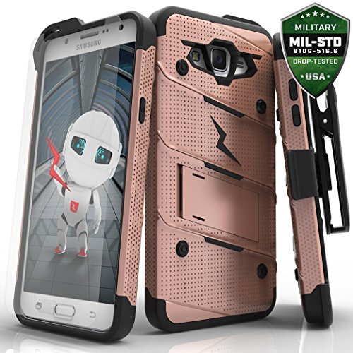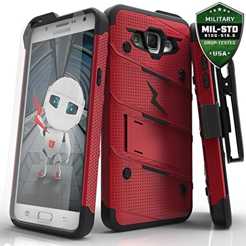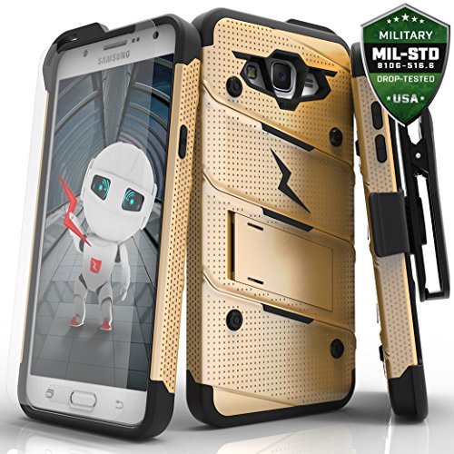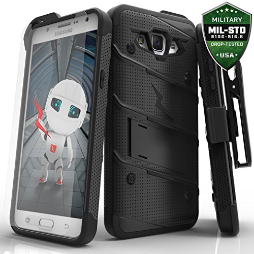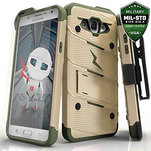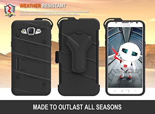 Protective, attractive, and exclusive. The perfect 3 words to describe the Zizo [Bolt Series]. When it comes to finding a reliable Samsung Galaxy J7 case, the Zizo Bolt Cover is definitely your first choice. This product features a dual-layer case that is engineered to disperse impact force when dropped. A soft [Shock Absorbing] Tetra Polyurethane with an [Impact Resistant] Polycarbonate Shell is the secret behind Zizo Bolt Cover's protection. This bundle also includes a heavy duty 360 degree rotatable holster belt clip and a built-in kickstand to provide additional versatility and functionality while using your device. Aesthetically crafted with over 10 color variations to choose from to convey the perfect platform to express your style. The Zizo [Bolt Series] meets 12 Feet Military Grade Drop Test 810.1-G Certification. We know how important your phone's protection is to you, so we also included a Zizo [Lightning Shield] Samsung Galaxy J7 screen protector FREE with every purchase. This case is compatible with Samsung Galaxy J7 J700 2015. Zizo is a second-generation family company based out of Southern California. We're a New school company with Old school traditions. Become a part of the ZizoFamily today!Feature