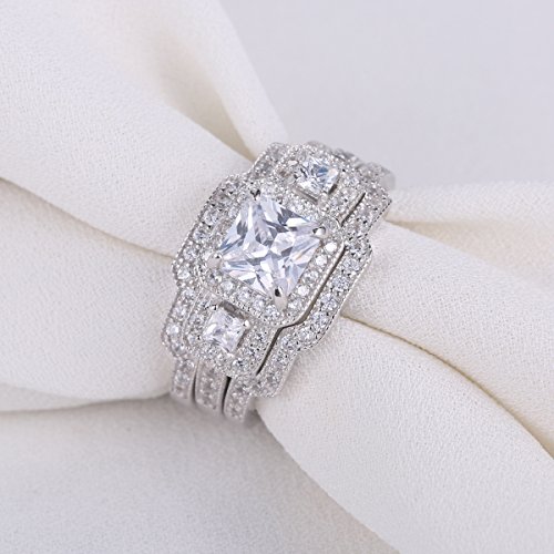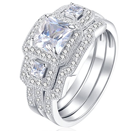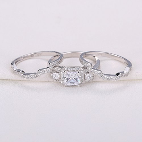 Title : Newshe 3pcs Princess White Cz 925 Sterling Silver Wedding Ring Set Engagement Ring Set Size 12