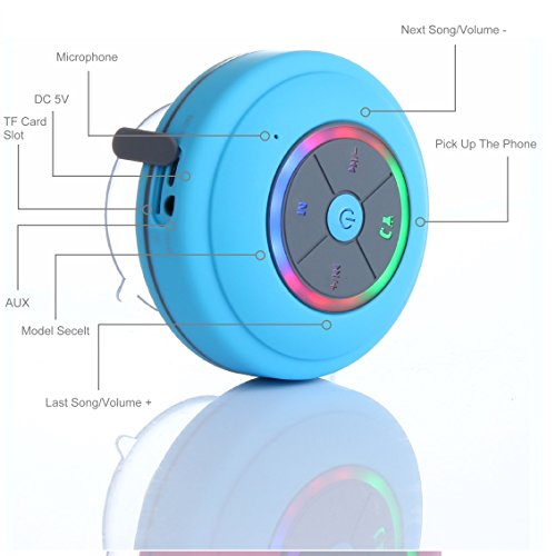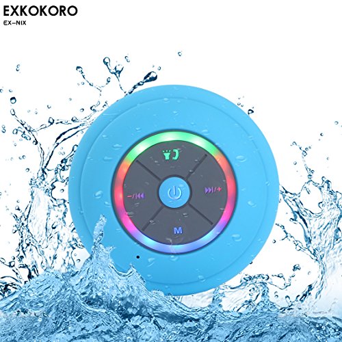 Title : Exkokoro(TM)Water Resistant Portable Shower Bluetooth 4.0 Speakers Subwoofer, Colorful LED Light Effect, Strong Adhesion, Hands-free Calls, FM Radio for all Bluetooth Device.(Blue)